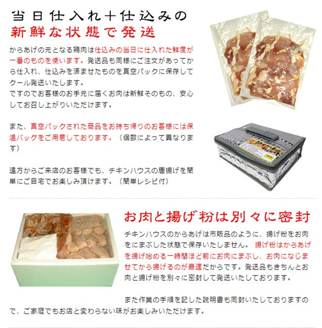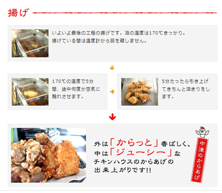 チキンハウスでは、その中津のからあげをお客様に最高の状態で召し上がって頂くために、様々な工夫をこらしています。