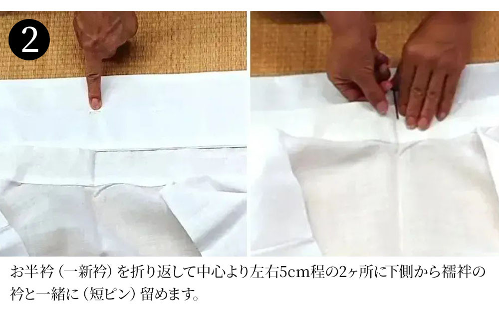 簡単お半衿「一新衿」は、衿を汗や汚れから守り、傷んだ衿を包み、衣を一新します。
