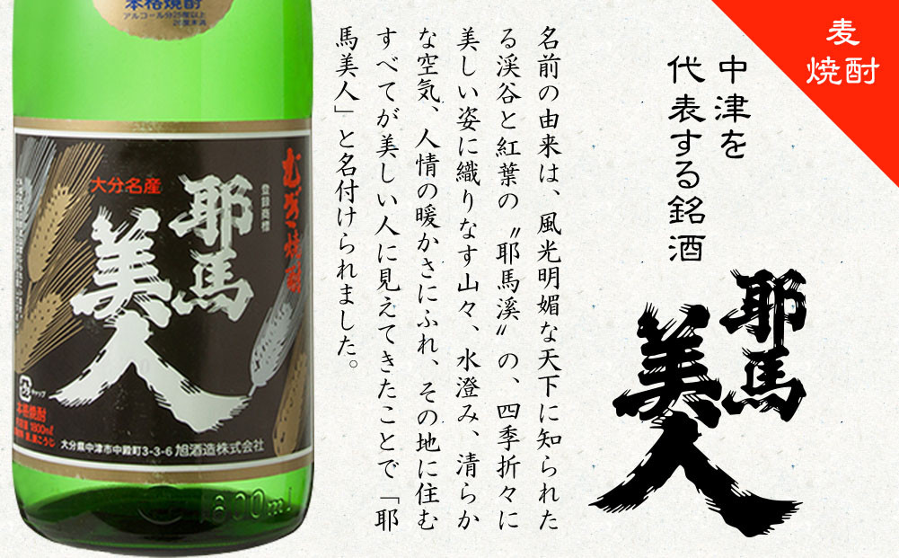 中津を代表する銘酒「耶馬美人」の麦焼酎です。