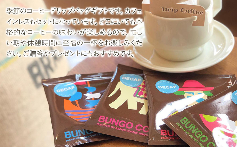 季節のコーヒードリップバッグギフトです。カフェインレスもセットになっています。