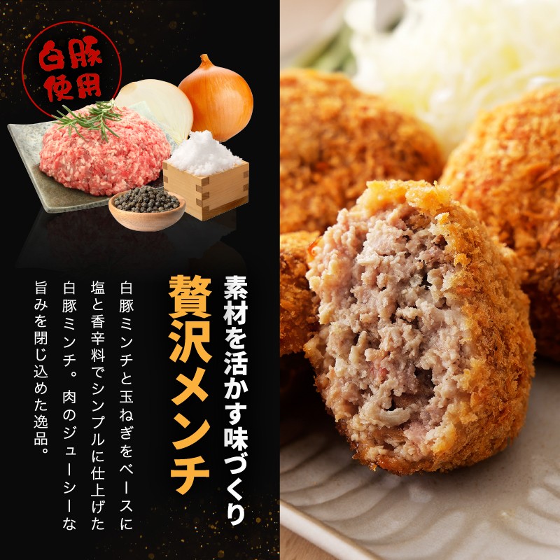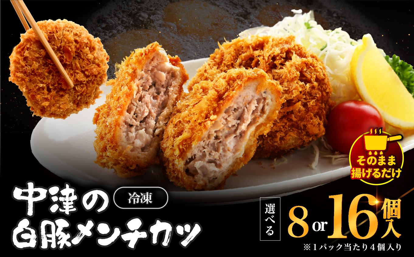 チョイスPayポイントと交換できる品 ストックして安心、食べて感動。冷凍とは思えないクオリティ! 冷凍 メンチカツ 生 選べる 内容量 8個入り ( 2パック ) / 16個入り ( 4パック ) | お肉 肉 豚肉 白豚 お惣菜 惣菜 おかず 国産 九州産 大分県産 大分県 中津市