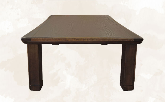天板縁の素朴なグラデーションが柔和な印象の家具調こたつ。