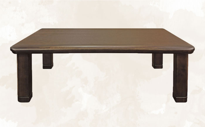 天板縁の素朴なグラデーションが柔和な印象の家具調こたつ。
