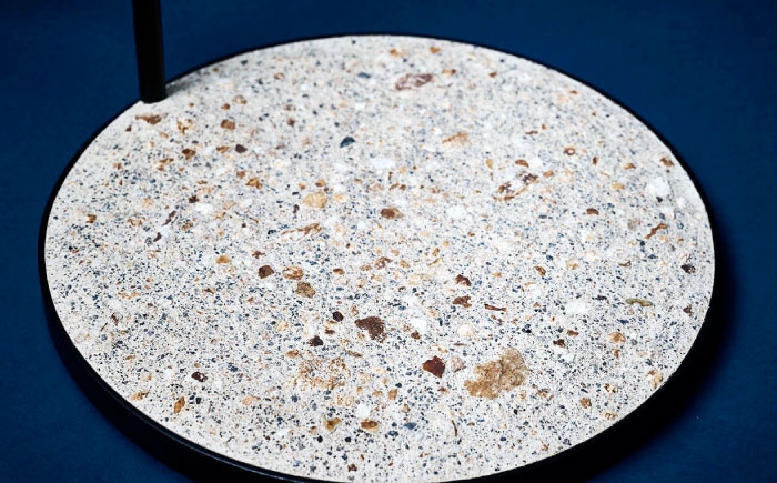 ライトの台座には、唐臼の下にある粉砕された陶土や川の石や小鹿田焼の残土を利用し、左官職人が伝統工法を用いて仕上げの風合いを追求しました。