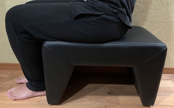 このスツールの最大の特徴は、座面の下が大きく開いていること。