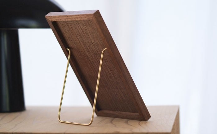 真鍮製のスタンドはフレーム内にすっきりと収まり、驚くほどスリムに。