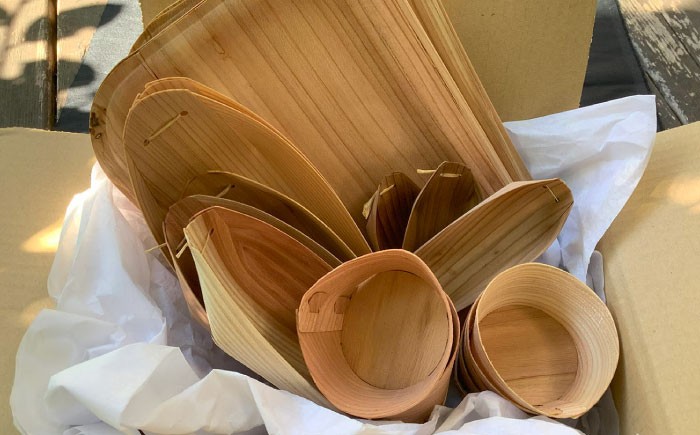 人と地球にやさしい日本の杉から生まれた器、木の温もりを感じながら食卓を彩ります