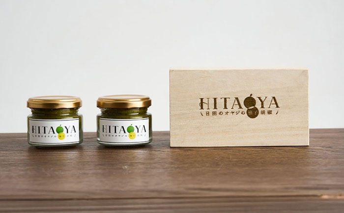 柚子胡椒発祥の地といわれる大分県日田市発。日田のオヤジから受け継いだ至高の味。 HITAOYA~日田のオヤジの柚子胡椒~木箱入(40g×2瓶)×1セット 日田市 / 株式会社グローバルリンク 柚子胡椒 ゆずこしょう 調味料 [ARGG005]