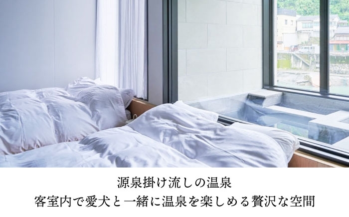 最大の特徴は、全客室に備えられた源泉掛け流しの温泉。客室内で愛犬と一緒に天ヶ瀬の豊かな湯に浸かりながら、ぬくもりを感じる至福のひと時をお過ごしいただけます。