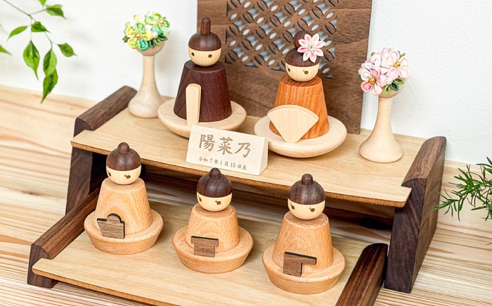 名札付き!ナチュラルでかわいいおひなさま 初節句・出産祝い・ギフトにもおすすめ 木製ひな人形 二段飾り 雛人形 お雛様 桃の節句 日田市/合同会社ウッドアート楽 [ARDN041]