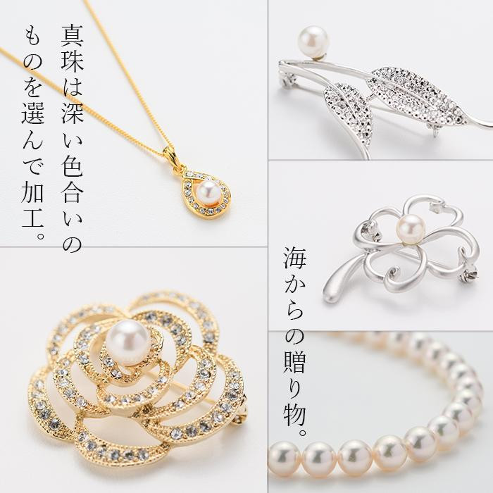 アコヤ真珠 ブローチ バラ (7mm珠) 真珠 パール ブローチ バラ …