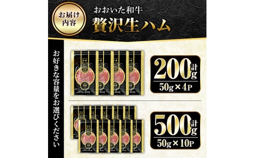 チョイスPayポイントと交換できる品 国産黒毛和牛を原料とした珍しい牛生ハム 小分け個包装で便利! <内容量が選べる!>おおいた和牛 生ハム (計200g・計500g) 国産 牛肉 もも肉 ハム A4 和牛 ブランド牛 小分け おつまみ 小分け【FW008・FW009】【ミートクレスト】