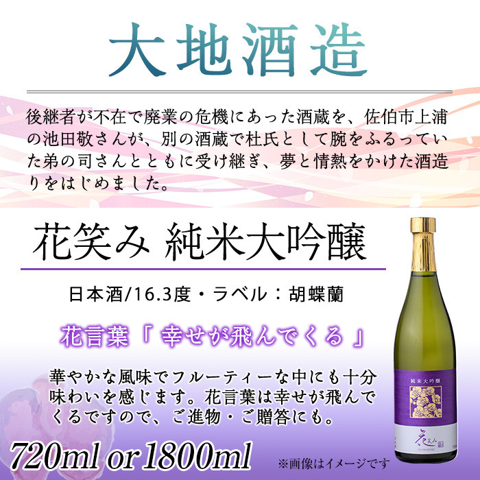 <内容量が選べる>【令和元年 再起の酒蔵】花笑み純米大吟醸酒…