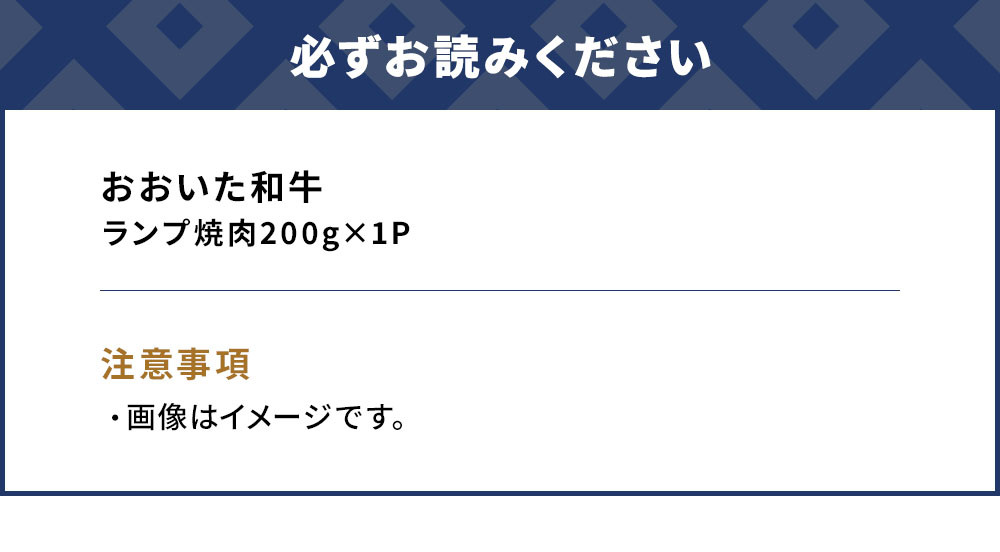 | 容量 | おおいた和牛ランプ焼肉:200g×1パック 【生産地】大分県 【保存方法】冷凍 【原材料】牛肉 |