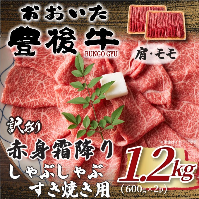 大分の恵まれた自然の中で育まれ輝かしい歴史と実績を持つ豊後牛をお楽しみください! 訳あり!おおいた豊後牛赤身霜降りしゃぶしゃぶすき焼き用 (肩・モモ) 1.2kg(600g×2p) | 和牛 豊後牛 国産牛 赤身肉 しゃぶしゃぶ すき焼き 家庭用 大分県産 九州産 津久見市 国産