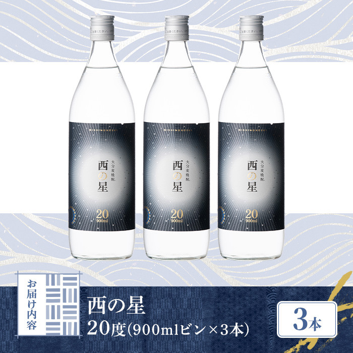 大麦の新品種「ニシノホシ」を原料に麹の技を傾けてじっくり醸しました。 西の星 20度 ビン(計2.7L・900ml×3本)酒 お酒 むぎ焼酎 麦焼酎 常温 西の星 三和酒類【106101800】【酒のひろた】