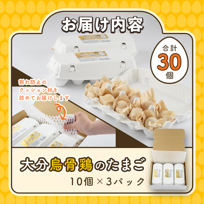 大分烏骨鶏のたまご(計30個・10個×3P)卵 玉子 烏骨鶏 うこっけ…