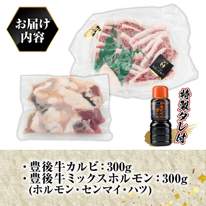 目利きによる厳選豊後牛 豊後牛 カルビ+ミックスホルモンセット 光長亭 特製タレ付(合計600g+250ml)牛肉 お肉 カルビ ホルモン センマイ ハツ 焼肉のたれ【109900200】【ショッピングストアー光長】