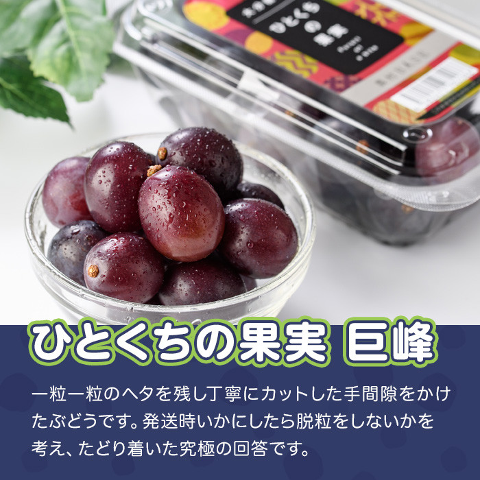 一粒一粒のヘタを残し丁寧にカットした、手間隙をかけたぶどうです。 <先行予約受付中!2026年8月上旬以降順次発送予定>ひとくちの果実 巨峰(計600g・300g×2パック)国産 ぶどう 葡萄 フルーツ 果物 くだもの 果実【100702200】【宮田ファミリーぶどう園】