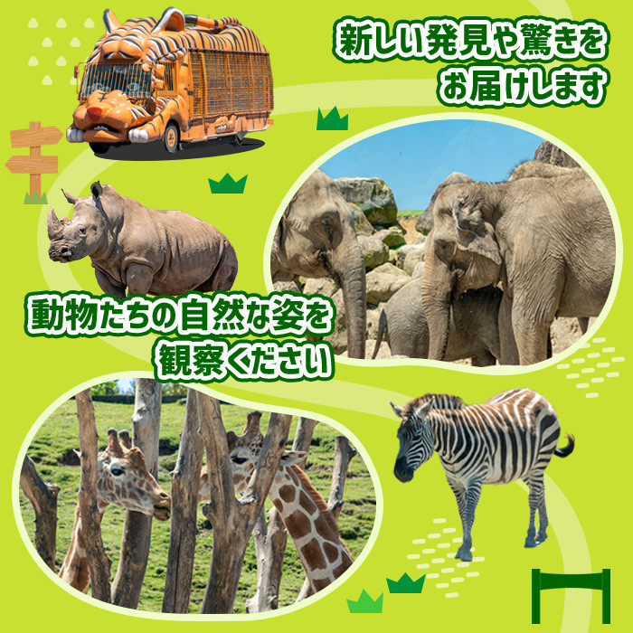 家族旅行、デート、観光はここで決まり! アフリカンサファリ入園券とオリジナルクリアファイルのセット(入園券大人2枚・小人4枚・クリアファイル6枚)チケット 動物園 サファリパーク形動物園 家族旅行 デート 観光【110601700】【九州アフリカ・ライオン・サファリ】
