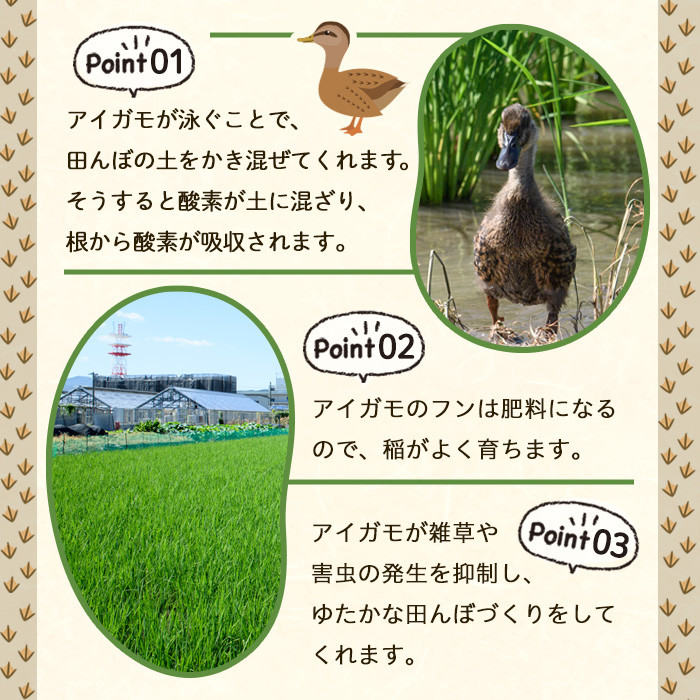 科学肥料や農薬を使用せずアイガモ農法により育てた安心・安全なお米です。