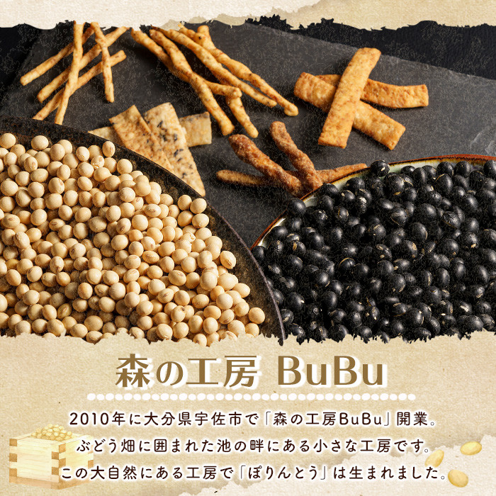 ぽりんとう黒糖味は宇佐産大豆ふくゆたかが基本材料となります。