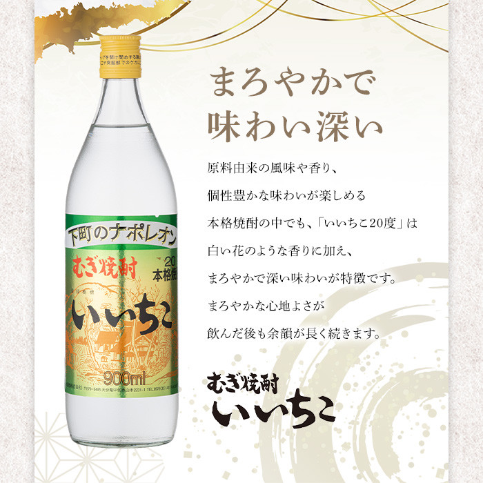 やわらかな口当たり、割ってもひろがる豊かな味わい。 いいちこ 20度 ビン(計21.6L・900ml×24本)酒 お酒 むぎ焼酎 麦焼酎 アルコール 飲料 常温 三和酒類【106105400】【酒のひろた】