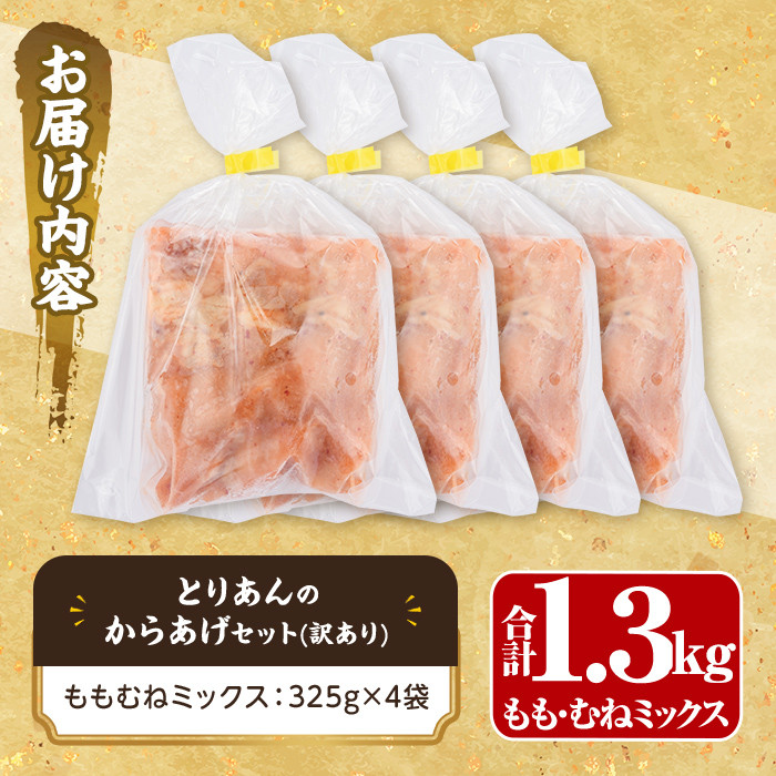 地域の生産者応援の品 から揚げグランプリ最高金賞を受賞した、宇佐のからあげのセットです! <訳あり・簡易包装><からあげグランプリ最高金賞>宇佐 とりあんのからあげ(合計1.3kg・ももむねミックス) から揚げ からあげ 簡単 冷凍 惣菜 お弁当 おかず おつまみ 揚げるだけ セット【1035100300】【BOROYA】