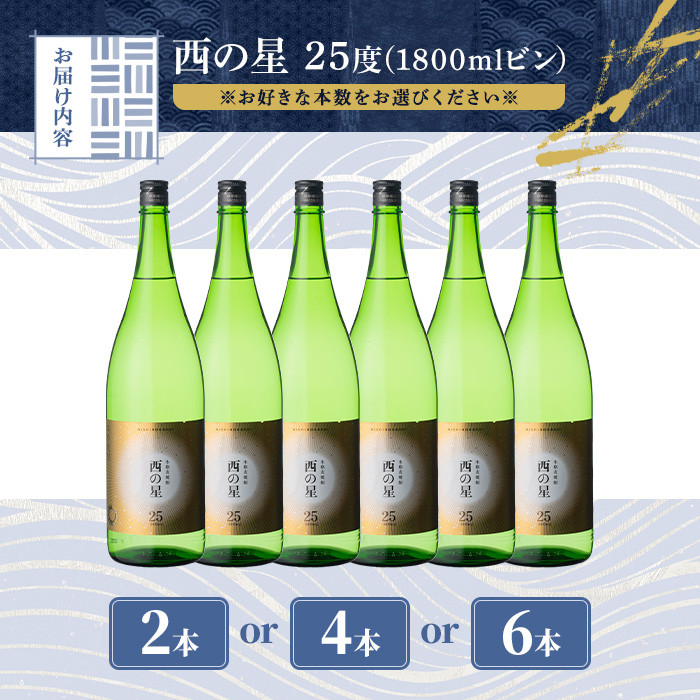 <本数が選べる!>西の星 ビン 25度(1800ml・2本、4本、6本)酒…
