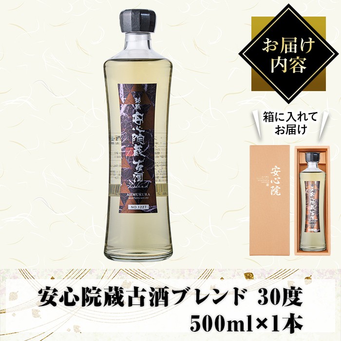 長期熟成された樫樽貯蔵の麦焼酎をブレンドした特別な商品です。 安心院蔵古酒ブレンド 30度 (500ml) 大分むぎ焼酎 安心院蔵 むぎ大将 お酒 むぎ焼酎 麦焼酎 常温【100101100】【縣屋酒造】