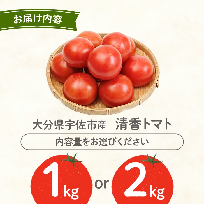 | 容量 | 清香トマト ▼お好きな内容量をお選びください ・1kg ・2kg |