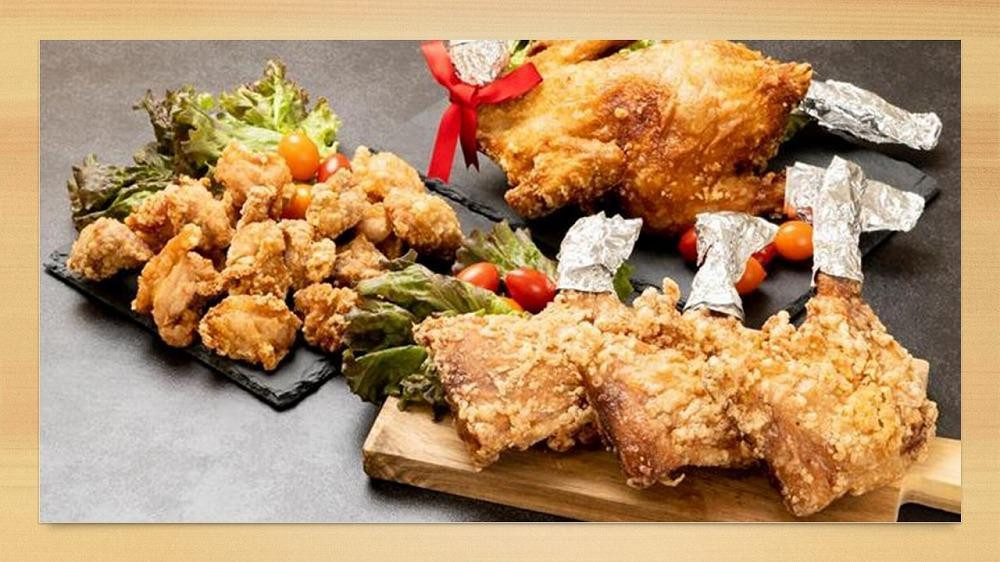 まる揚げ1羽(約1.2kg)・骨付きもも揚げ3本(約220g×3本)・…