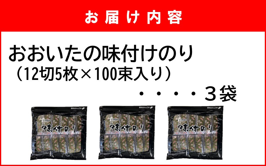 食べても食べても食卓に海苔がある! おおいたの味付けのり 1500枚 (12切5枚×100束×3袋) 味付海苔 味のり_2440R