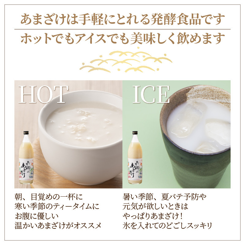 | 容量 | 六郷の甘酒900ml/商品はノンアルコールです。 以下の容量からお選びください。 ・六郷の甘酒900ml×6本 ・六郷の甘酒900ml×5本 ・六郷の甘酒900ml×3本 |