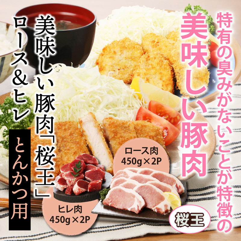国東市のブランドポーク「桜王」のロース,ヒレ肉のトンカツ用精肉1.8kg 美味しい豚肉「桜王」ロース&ヒレ/とんかつ用1.8kg・通_29309A