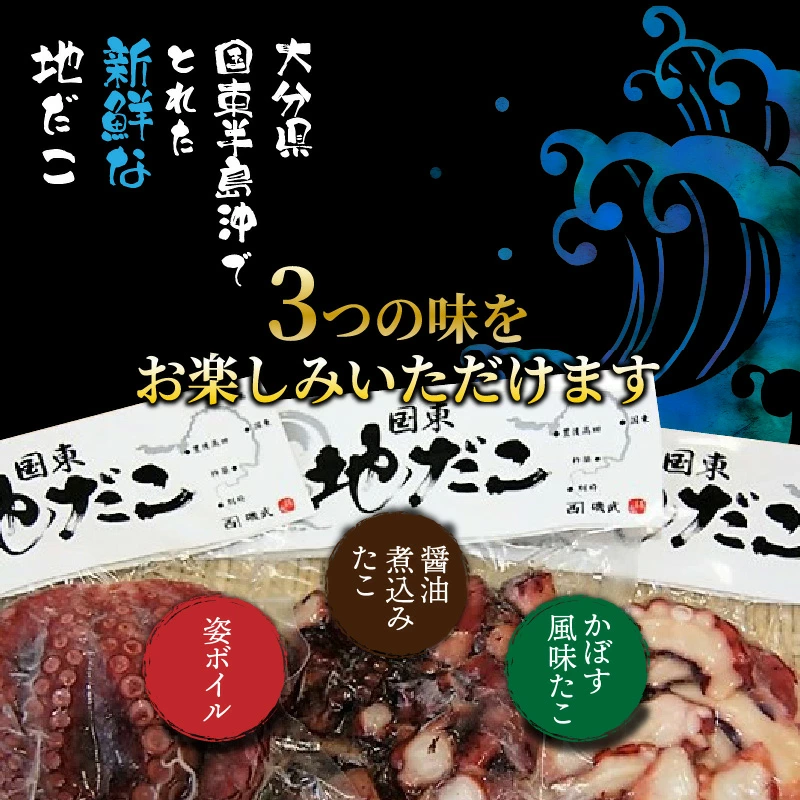 そのまま食べられる、新鮮な地だこを3つの味で! 国東半島の天然地だこ三味セット/計400g_0014N