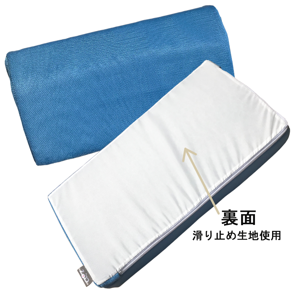 カバーは丸洗いでき、中材はシャワーで洗えます。底面は滑り止めです。