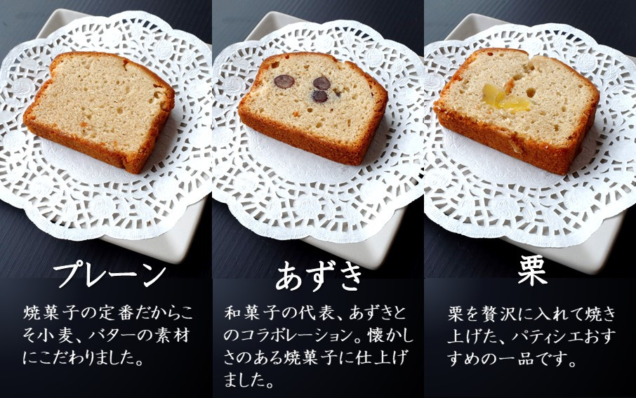 プレーン:焼菓子の定番だからこそ小麦、バターの素材にこだわりました。創業以来試行錯誤してきた味をご賞味ください。