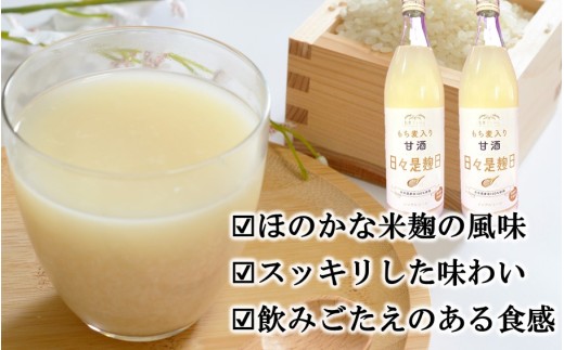 ひと味違うもち麦入り甘酒 【選べる容量】国東産米100%使用 もち麦入りノンアルコール米麹甘酒「日々是麹日」 プレーン味 900ml_2614R