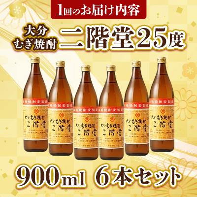 <毎月定期便>大分むぎ焼酎二階堂(25度(900ml)6本) 全3回【4007338】