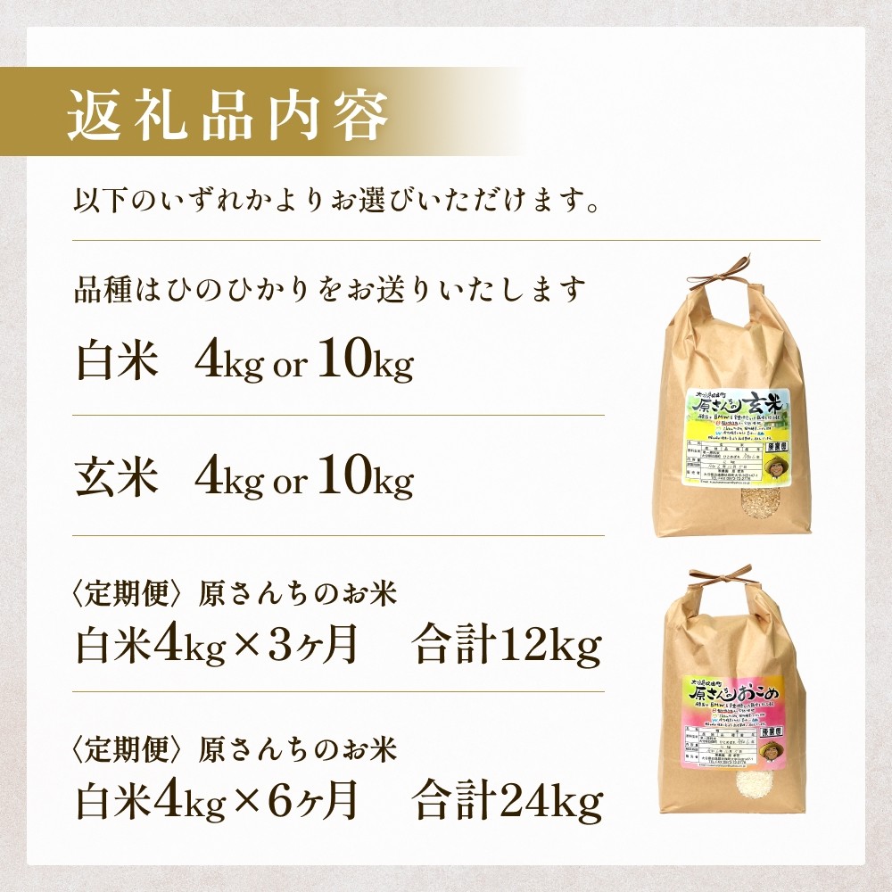 真心を込めてお届けします! 【令和8年産米先行受付】原さんちのお米 白米 玄米 4kg -10kg 1回 3回 6回 選べる 定期便 ひのひかり 米 お米 こめ コメ ご飯 ヒノヒカリ 常温 大分県 大分 玖珠町 玖珠