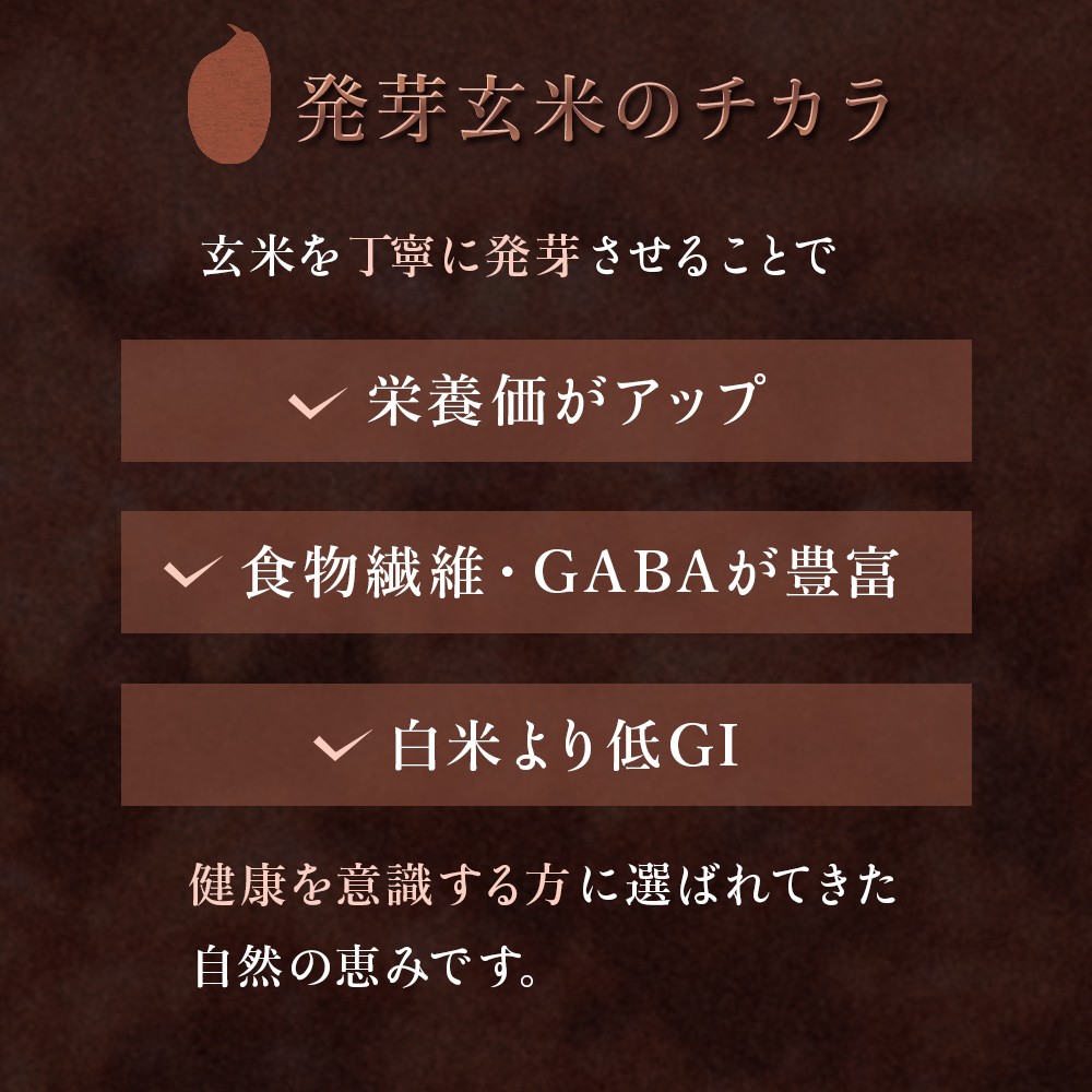 36時間かけて丁寧に発芽させた玄米を、温度と湿度を管理しながら72時間かけてじっくりと熟成。人の手と時間が生み出す、深い旨みと上質なもちもち感!