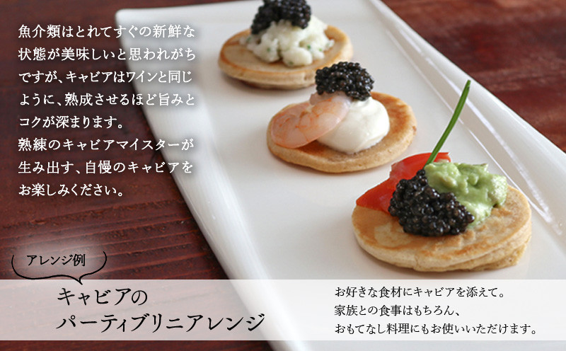 キャビアは、熟成によってアミノ酸が増し、獲れたての新鮮な状態では味わえない、深い旨味と豊かなコクが生まれます。