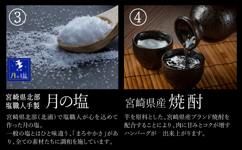 「全国和牛能力共進会」で4大会連続最高賞受賞を達成した宮崎牛を使用したハンバーグです。肉の旨味と食感を追求し、調味料には宮崎県産のものを使い、無添加製法で仕上げました。