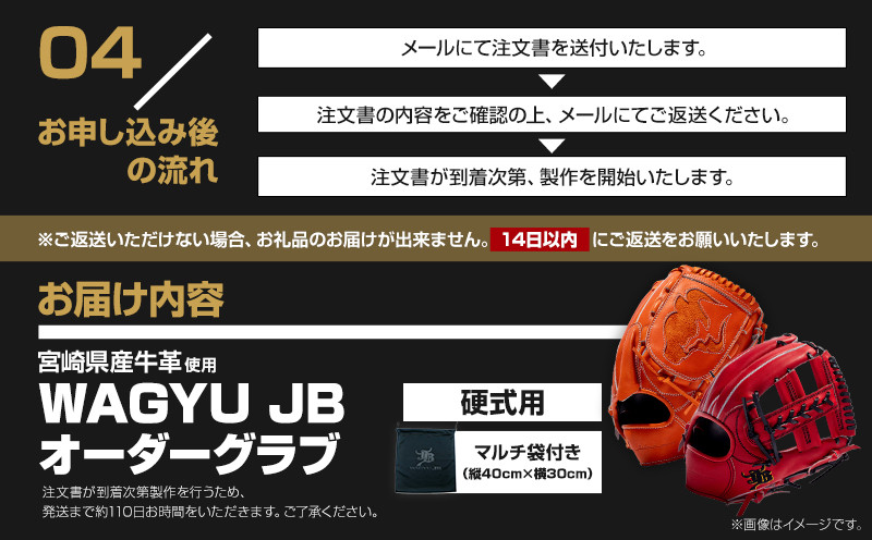 チョイスPayポイントと交換できる品 軽量・型くずれしにくい・しなやかに粘るが特徴の宮崎県産牛革仕様の野球硬式用グラブ 宮崎県産牛革使用 WAGYU JB硬式用オーダーグラブ_M147-001_01