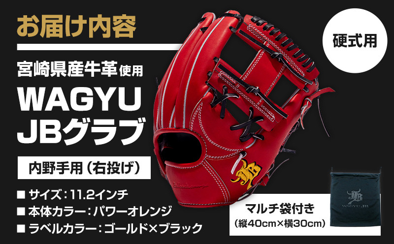 チョイスPayポイントと交換できる品 軽量・型くずれしにくい・しなやかに粘るが特徴の宮崎和牛革を使った野球硬式用グラブ 宮崎県産牛革使用 WAGYU JB 硬式用 グラブ 内野手用 JB-006T(パワーオレンジ/右投げ用)_M147-048_02