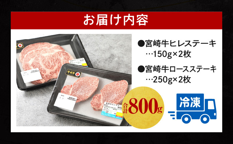 チョイスPayポイントと交換できる品 宮崎 宮崎牛 黒毛和種 高級部位 ヒレ ロース ステーキ 宮崎牛ヒレステーキ150g×2、ロースステーキ250g×2_M132-002_03