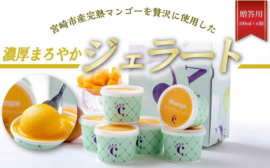 チョイスPayポイントと交換できる品 完熟マンゴー ジェラート 贅沢 濃厚 まろやか アイス お取り寄せ スイーツ 数量限定 宮崎市産完熟マンゴーで作った濃厚なマンゴージェラート(贈答用 100ml×6個)_M184-006