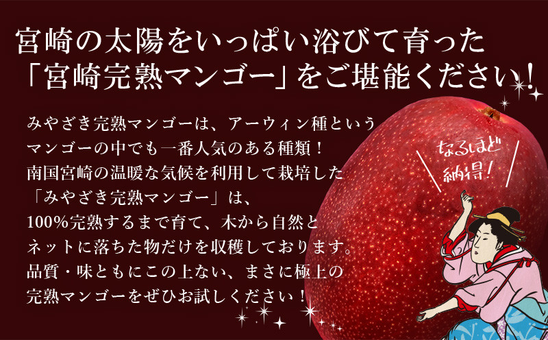 宮崎県園芸ブランド検査協会の基準による糖度12度以上の完熟マンゴーです。
