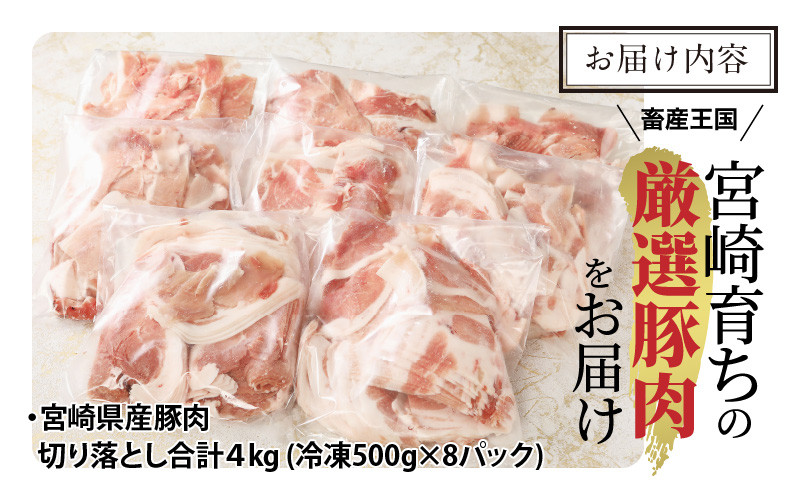 チョイスPayポイントと交換できる品 \家庭で大活躍の豚肉の切り落としを小分けにしてお届けします/ 宮崎県産豚肉切り落とし合計4kg(冷凍500g×8パック) | 豚肉 ぶた肉 ぶたにく ブタ肉 豚 4キロ 切り落とし 切り落し おすすめ パック 小分けパック 小分け セット 炒め物 汁物 豚汁 お弁当 おかず 便利 冷凍 宮崎県産 宮崎市 国産 |_M179-007_01